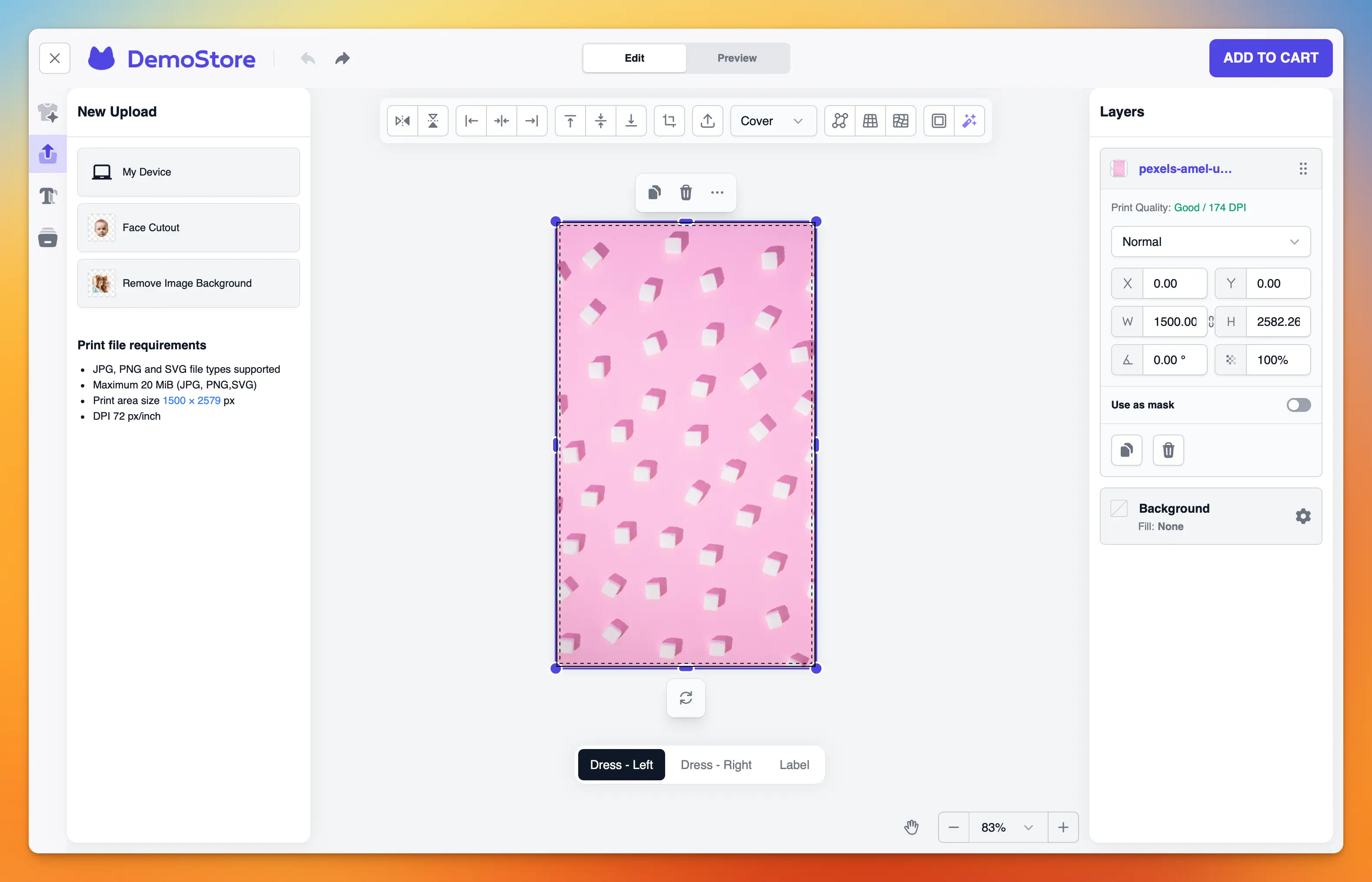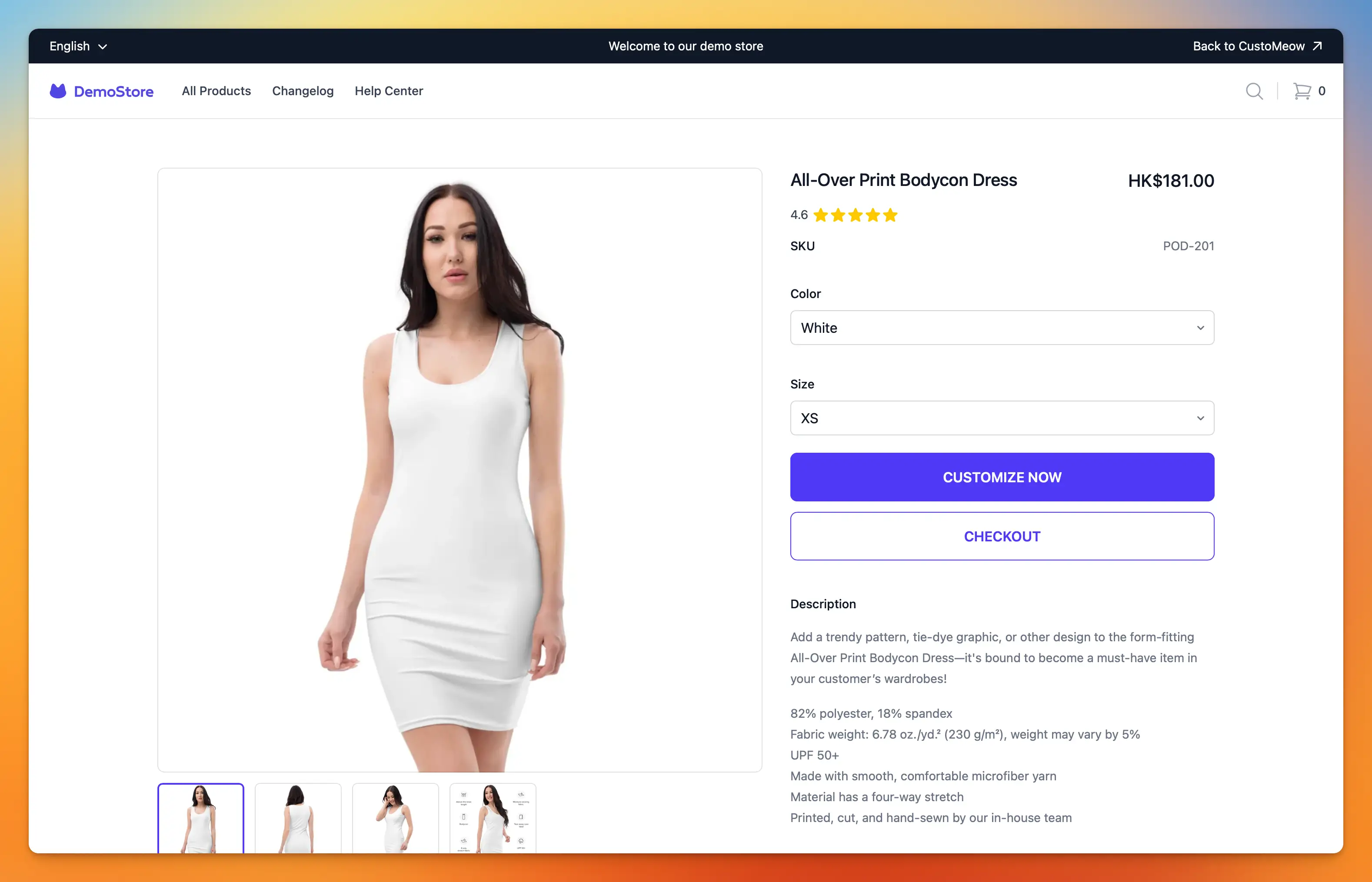 Clicking either the Customize button or the Quick Checkout button will open the POD Designer.