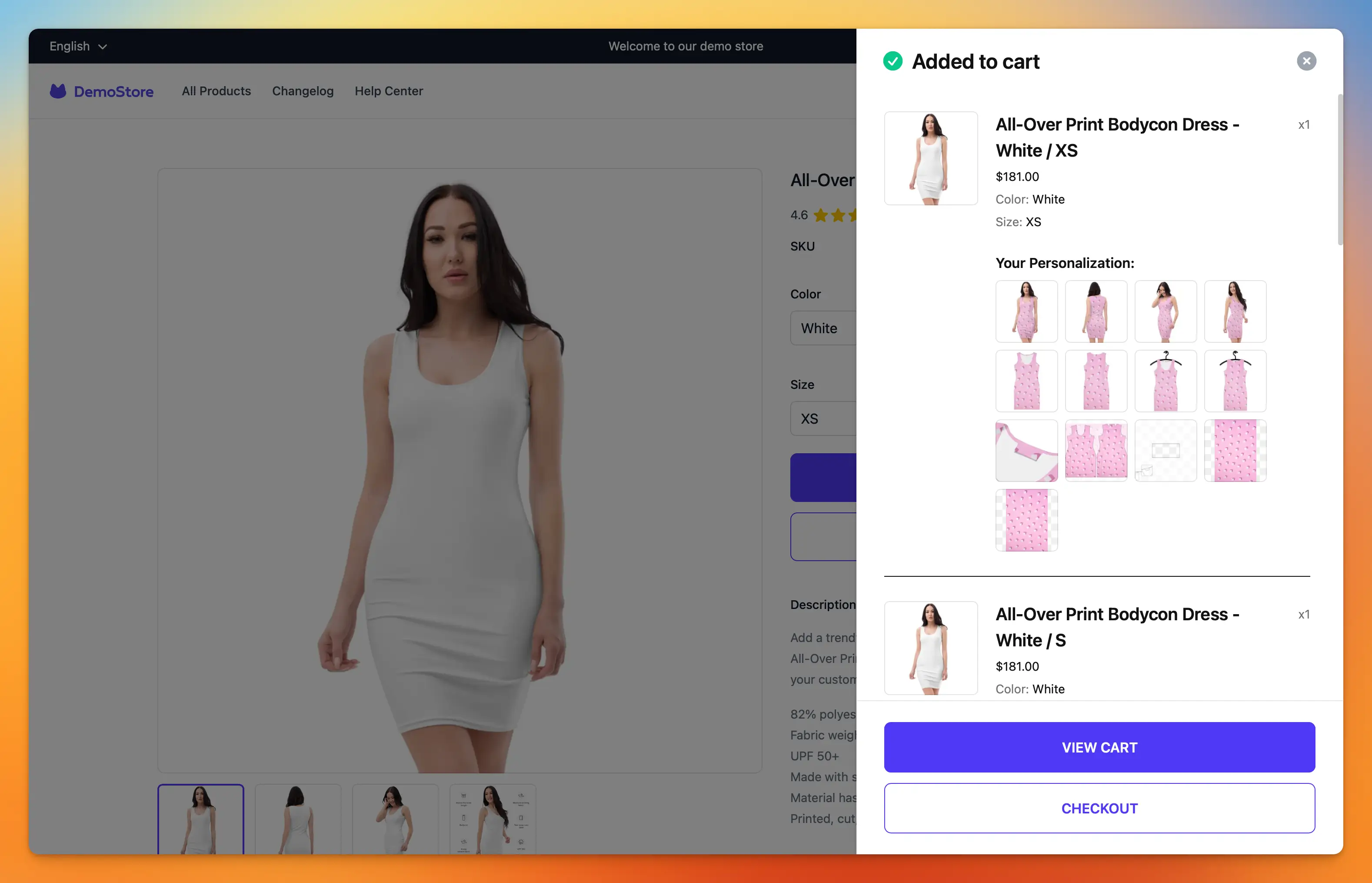 When your customer finishes designing and clicks the Add to Cart button, all products with the selected attributes will be added to the cart.